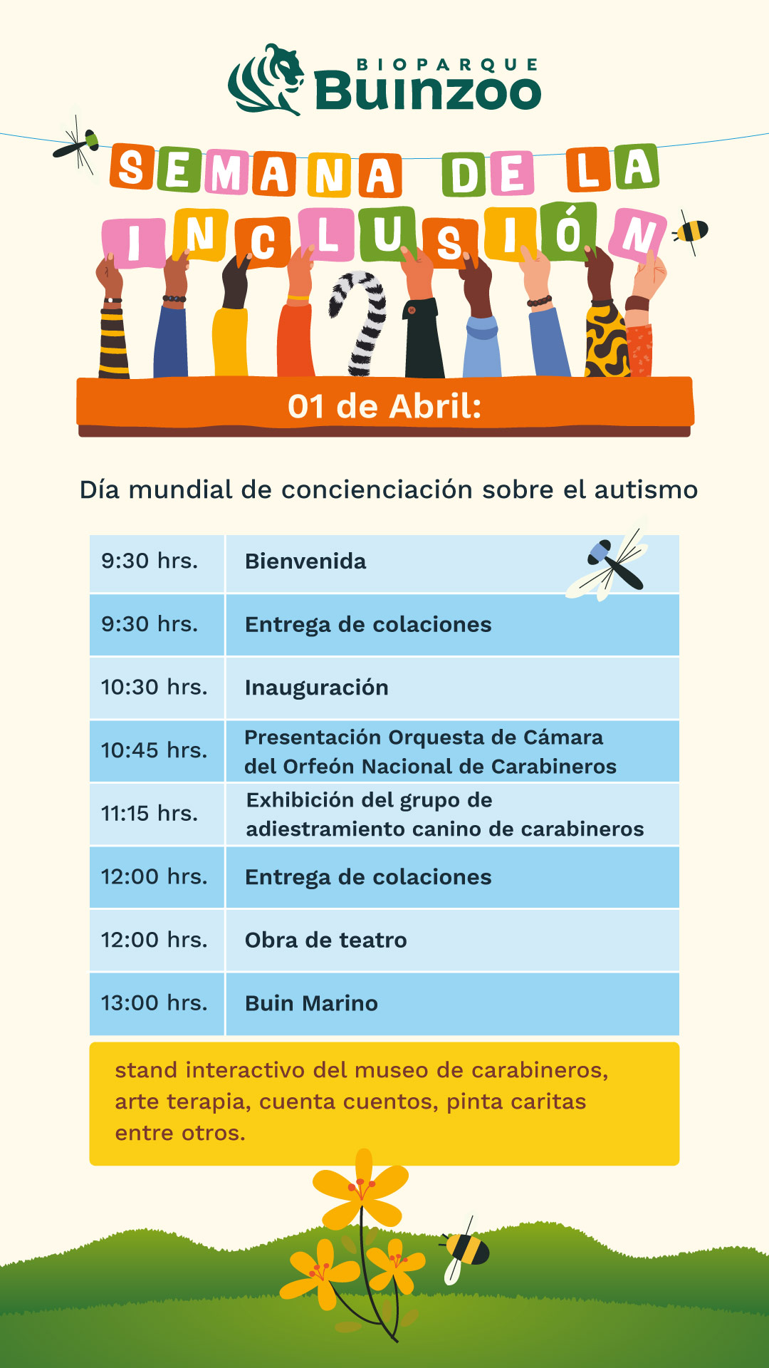 Con el objetivo de promover espacios más accesibles y participativos para toda la comunidad, Bioparque Buinzoo realizará por cuarto año consecutivo la Semana de la Inclusión, una iniciativa que se desarrollará entre el 24 de marzo y el 1 de abril, en conjunto con diversas instituciones de la zona.